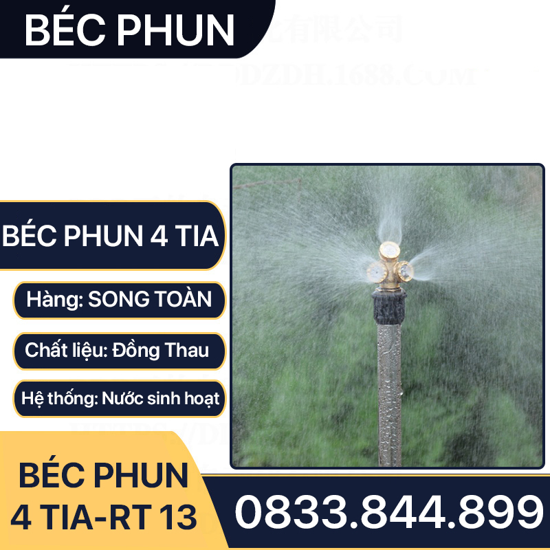 Béc phun 4 hướng đồng thau là một loại béc phun được sử dụng để phun tưới vườn, làm mát hoặc vệ sinh các bề mặt khác. Nó được làm từ đồng thau, một loại kim loại có tính năng chống oxy hóa và chịu được áp suất cao.