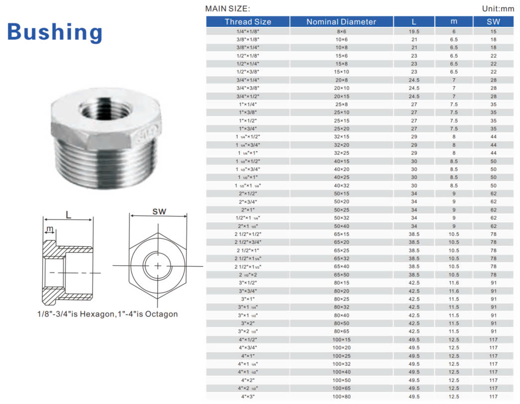 Tên gọi khác: Cà rá inox, Nối ren trong ren ngoài inox, Nối chuyển ren inox 304, Nối giảm ren inox 304