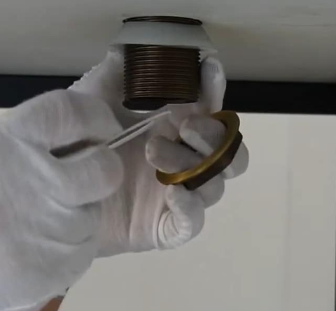 Sử dụng dụng cụ mở đai ốc để chuẩn bị cho quá trình lắp đặt. Đưa đai ốc vào lỗ hở trên bề mặt bồn rửa tay.