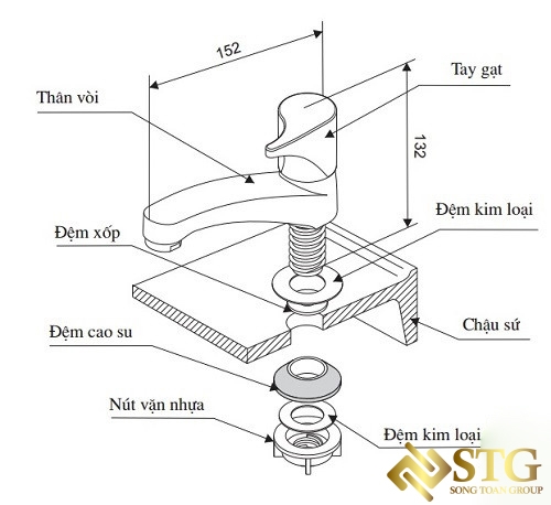 Đinh và Bu-lông: Sử dụng đinh và bu-lông phù hợp để cố định vòi lavabo vào chậu.