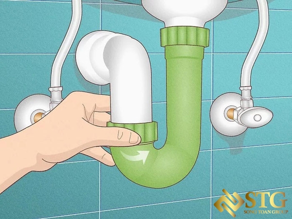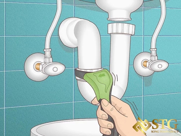 Sử dụng công cụ thích hợp, tháo đai ốc trên bẫy P để mở ra.