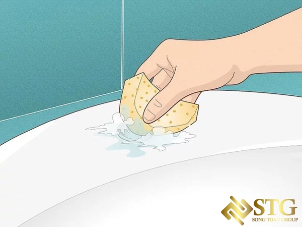 Làm sạch khu vực xung quanh chiếc lavabo cũ và lỗ vòi bằng nước rửa chén pha loãng để loại bỏ keo silicon cũ và bụi bẩn.
