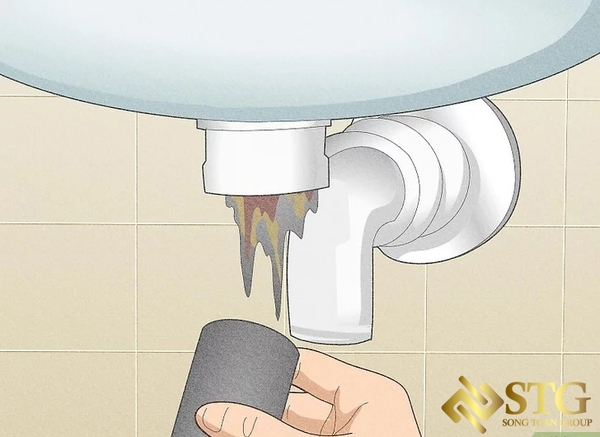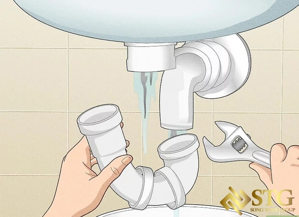 - Đặt xô dưới ống xi-phông để hứng nước đọng.