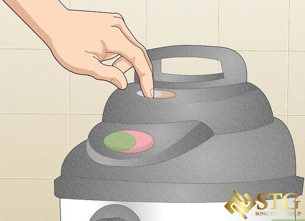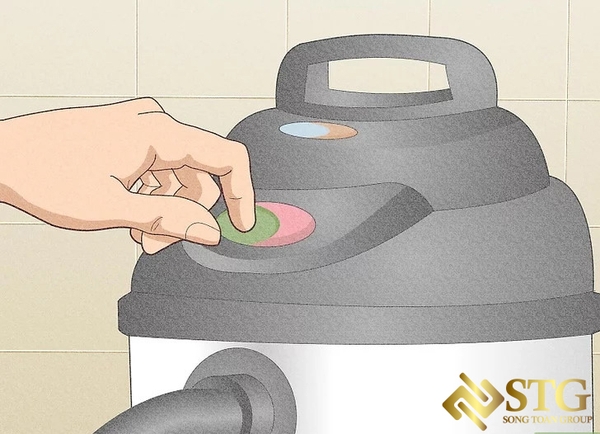 - Bật/tắt máy hút để tạo lực hút mạnh và làm bong búi rác.