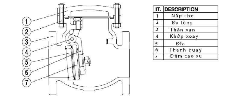Các loại van một chiều có cấu tạo chung với những bộ phận chính sau: