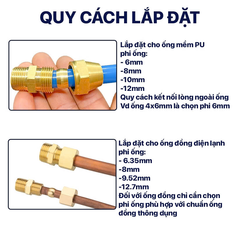 🔧 Lắp đặt ống PU và ống mềm: Ngoài ống đồng, sản phẩm còn thích hợp cho các loại ống PU và ống mềm.