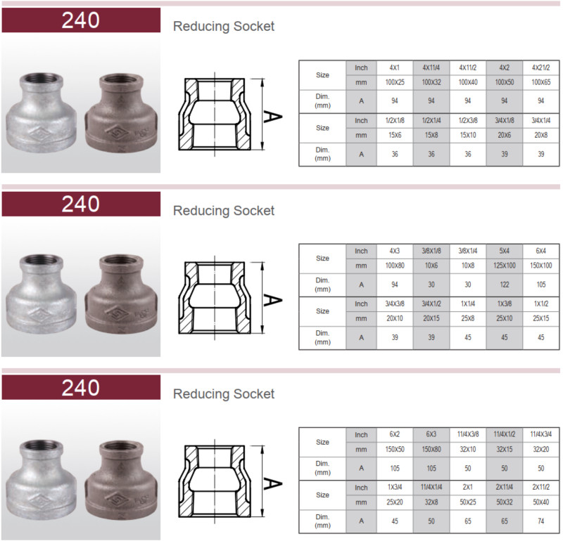 - Tên sản phẩm: Bầu giảm ren mạ kẽm, Đầu nối giảm ren mạ kẽm, côn thu ren trong mạ kẽm, giảm ren trong mạ kẽm