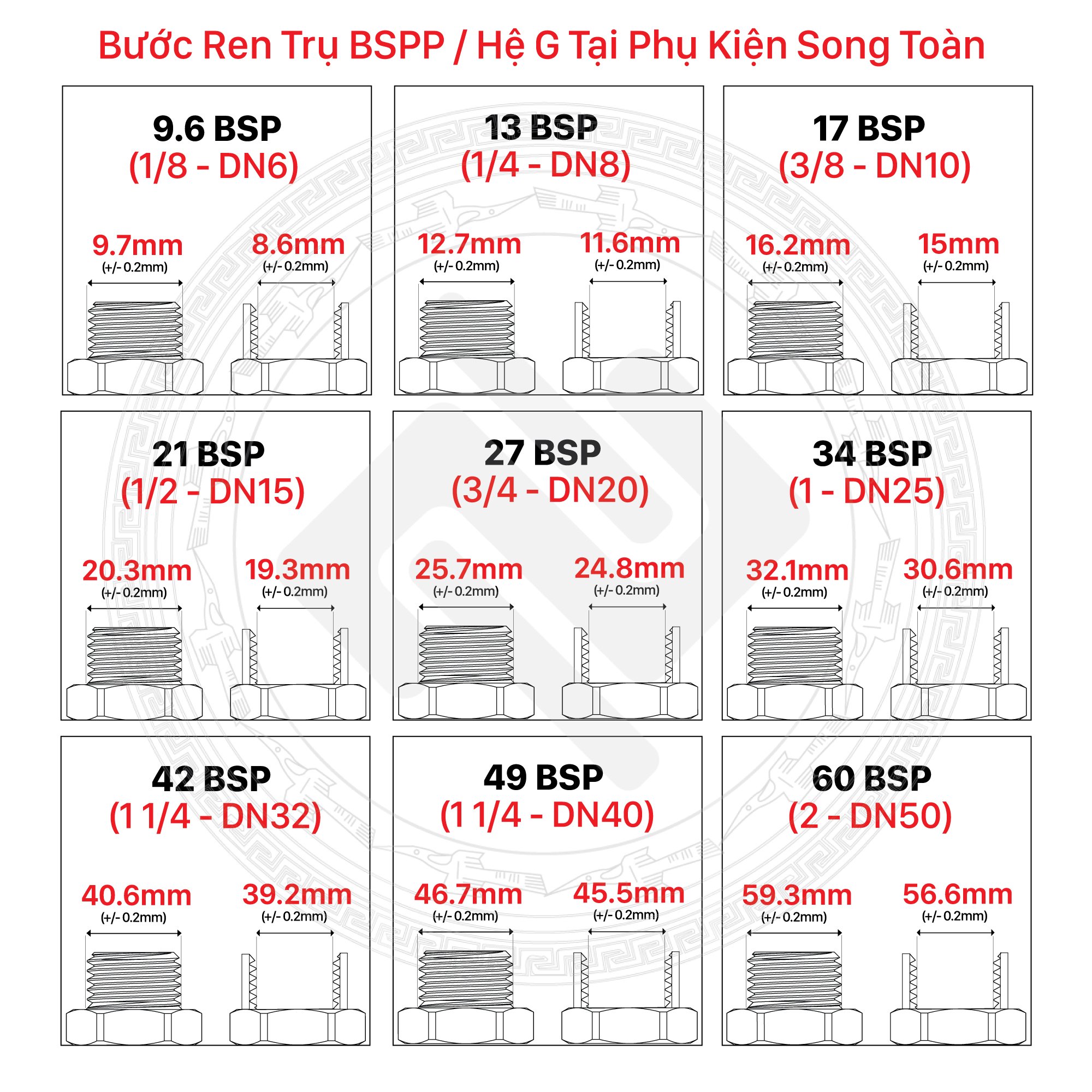 Hệ ren: Ren G - BSP (ren ống nước thông dụng)