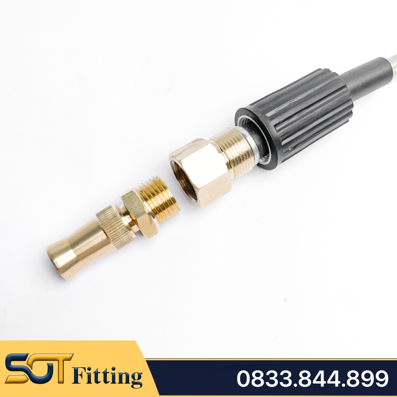 Kết nối với máy rửa xe: Lắp đầu phun vào dây kết nối ren 22 của máy rửa xe, đảm bảo siết chặt để tránh rò rỉ nước.