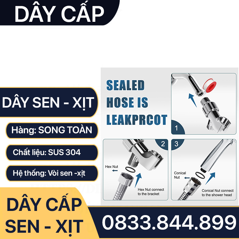 DÂY SEN CÓ 1 ĐẦU TÁN VUÔNG VÀ 1 ĐẦU TÁN CHỮ V ĐỂ LẮP VÀO ĐẾ VÒI SEN VÒI XỊT ĐỂ CÀI VÀO GÁC SEN XỊT DỄ DÀNG