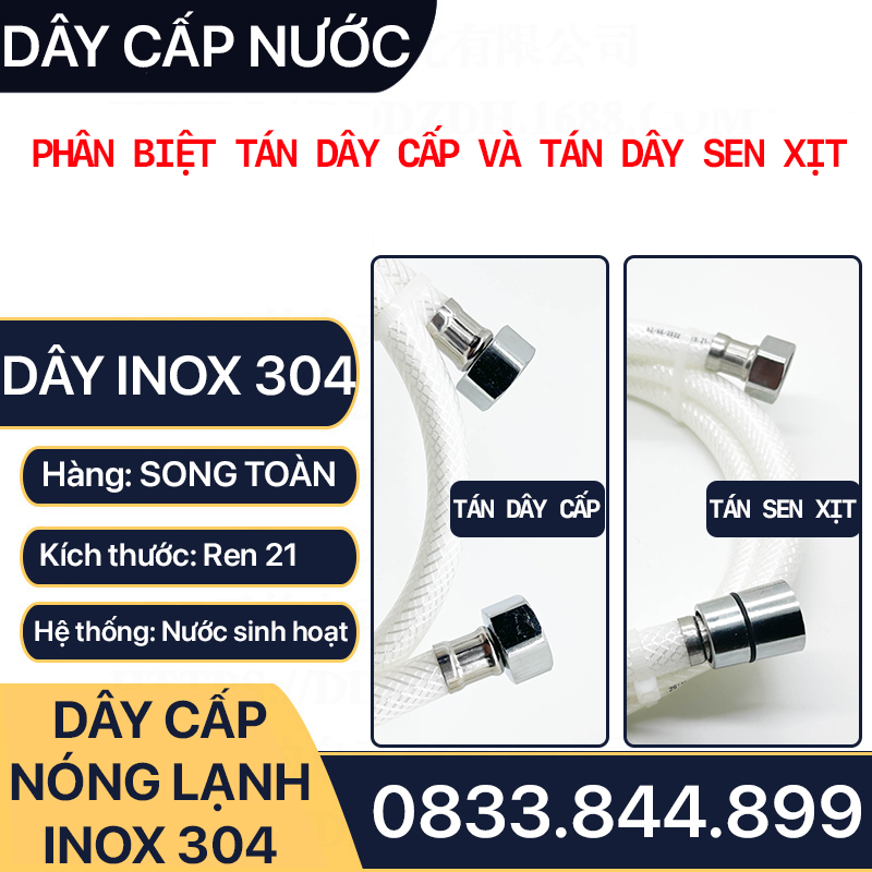 DÂY SEN CÓ 1 ĐẦU TÁN VUÔNG VÀ 1 ĐẦU TÁN CHỮ V ĐỂ LẮP VÀO ĐẾ VÒI SEN VÒI XỊT ĐỂ CÀI VÀO GÁC SEN XỊT DỄ DÀNG