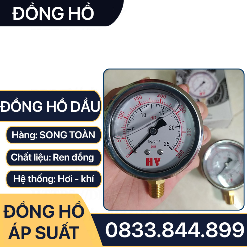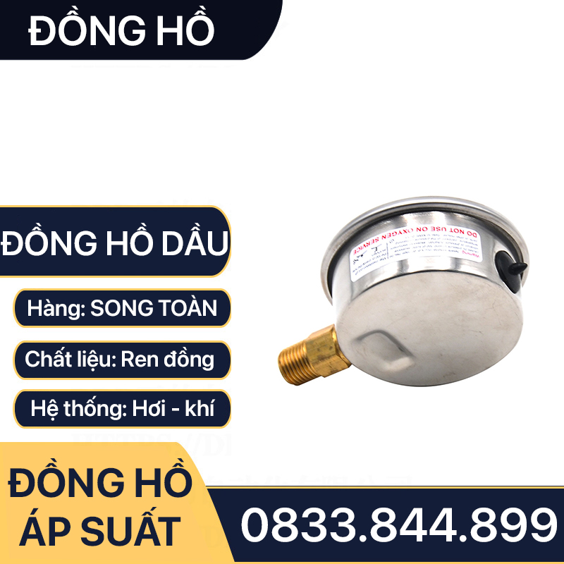 Đồng Hồ Áp Suất Dầu, Đồng Hồ Hơi Đo Áp Suất Dầu Mặt 63mm
