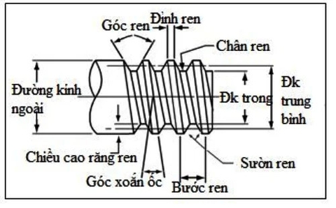 Trong quá trình gia công ren, có một số thông số chính quan trọng để định nghĩa hình dạng và kích thước của ren. Dưới đây là một số thông số chính cho ren: