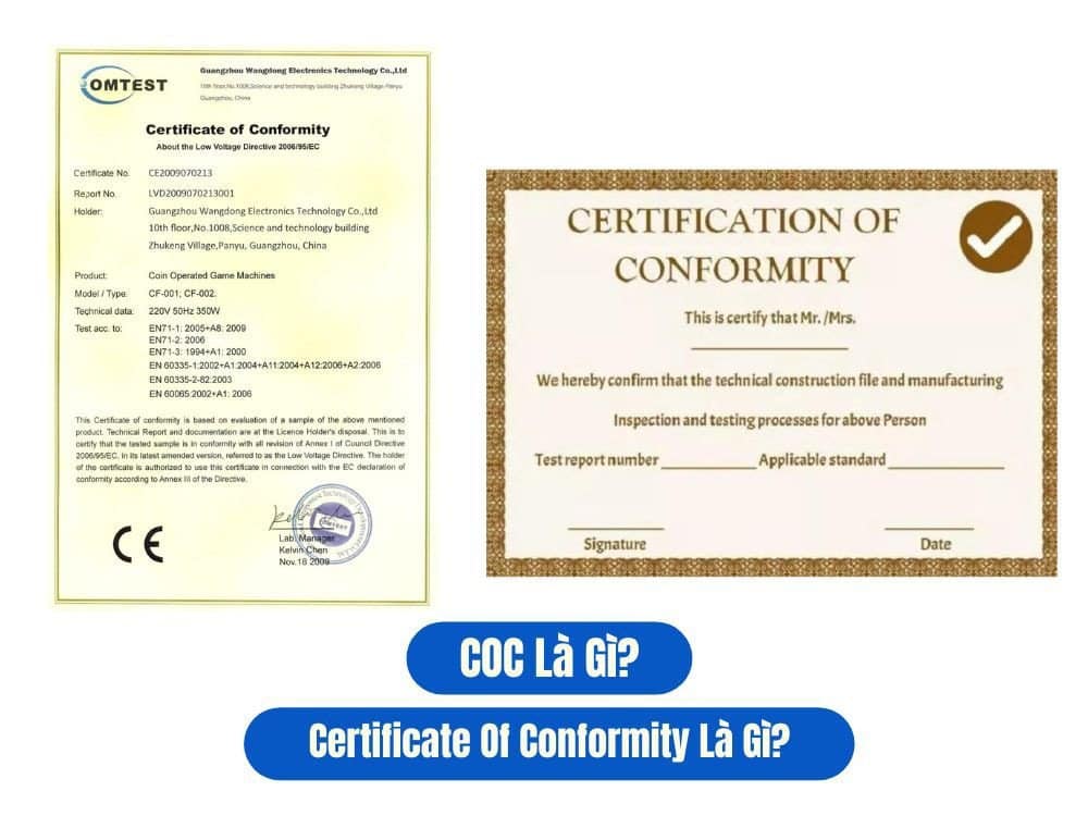 CoC (Certificate of Conformity) là một văn bản chứng nhận phát hành bởi một tổ chức, cơ quan, hoặc cá nhân có thẩm quyền, xác nhận rằng sản phẩm, dịch vụ, hoặc quy trình sản xuất tuân thủ các tiêu chuẩn, quy chuẩn, hay quy định kỹ thuật nào đó. Dưới đây là một số điểm quan trọng về CoC: