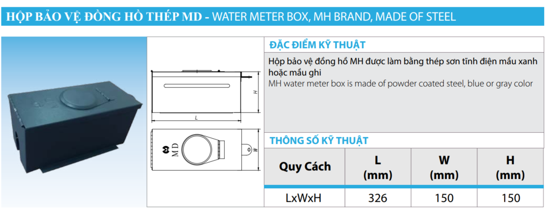 Hộp bảo vệ đồng hồ thép MD là sản phẩm chuyên dụng để bảo vệ đồng hồ nước khỏi các tác động bên ngoài, đặc biệt là trong các môi trường khắc nghiệt. Với chất liệu thép sơn tĩnh điện và màu sắc thanh lịch, sản phẩm này mang đến sự chắc chắn và thẩm mỹ cao.