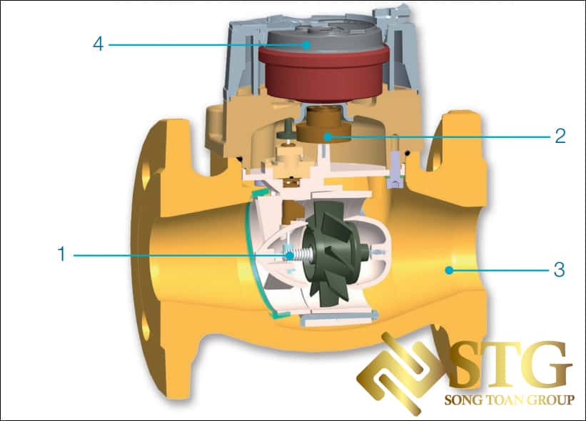 Bánh Xe Turbo: Khi có dòng nước chảy qua, lực đẩy được tạo ra, làm cho bánh xe Turbo quay. Bánh xe Turbo thường được làm từ vật liệu chịu nhiệt và áp lực cao để đảm bảo tính chính xác và độ bền.