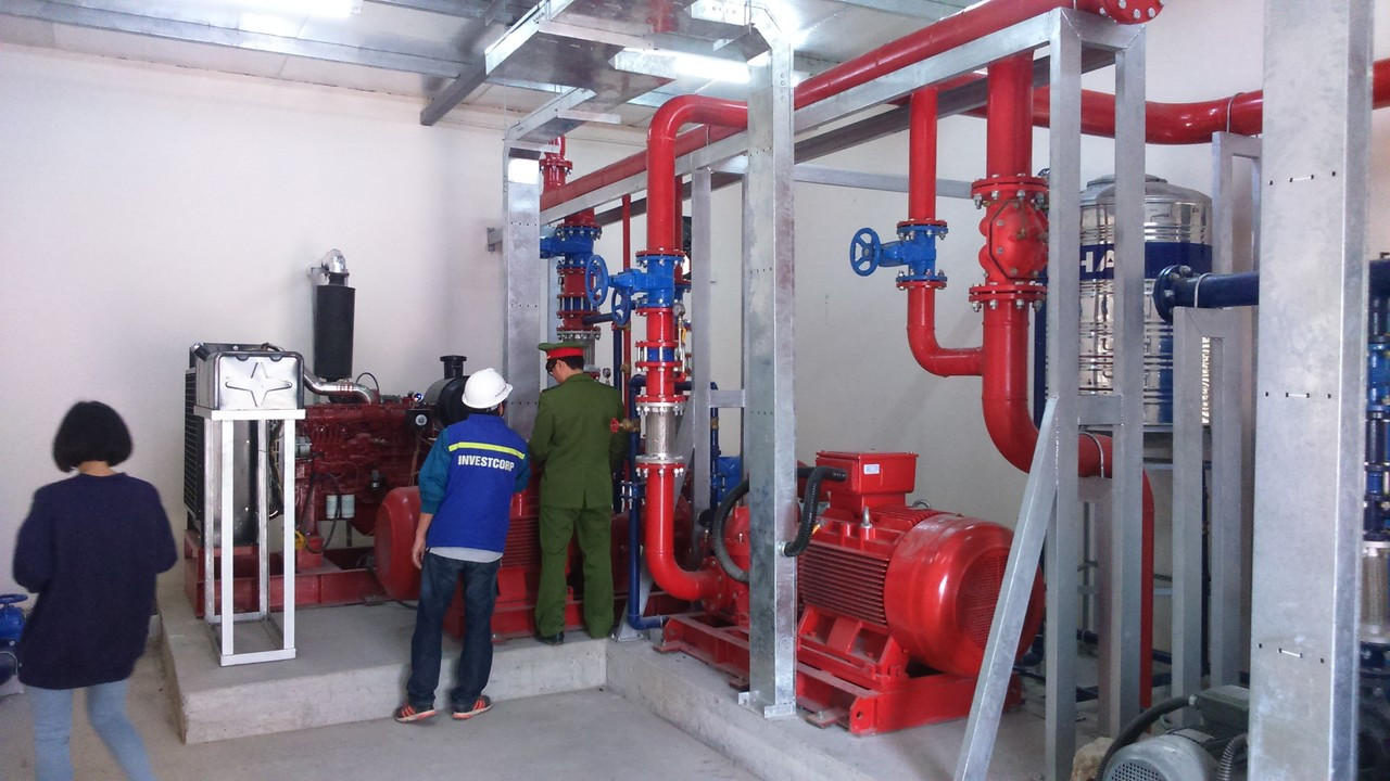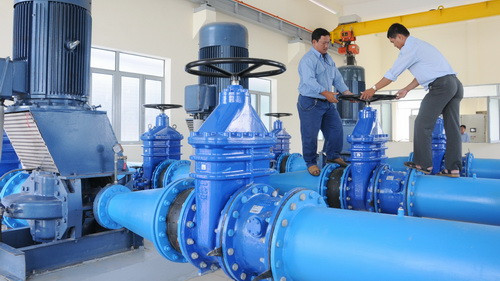 02 bơm nước ly tâm có công suất 60-100 m³/h để bơm nước vào hệ thống.