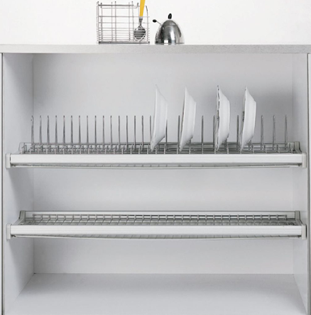 - Công năng: 02 tầng. Tầng dưới dành cho các loại đĩa, tầng trên để chén bát, giúp tối ưu hóa không gian lưu trữ.