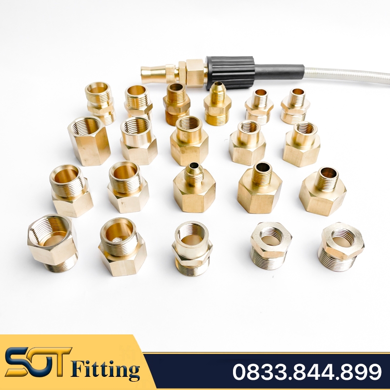 - Thiết kế ren ngoài đa kích thước: Sản phẩm có các kích cỡ ren từ 22 x 13, 13.8, 14, 17, đến 21, cho phép kết nối với các loại ống và dây dẫn có kích thước khác nhau. Điều này giúp tối ưu hóa tính linh hoạt và độ tương thích, phù hợp với nhiều dòng máy rửa xe và các ứng dụng khác.