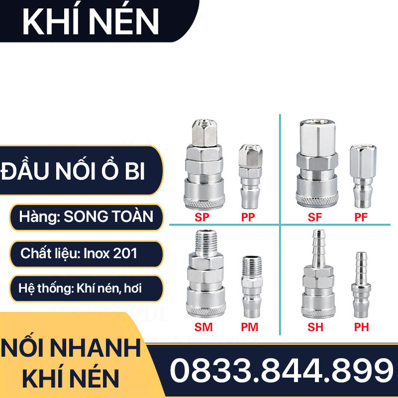 Khớp Nối Nhanh Khí Nén, Bộ Nối Nhanh Khí Nén Ổ Bi (SM+PM - SH+PH - SF+PF - SP+PP)