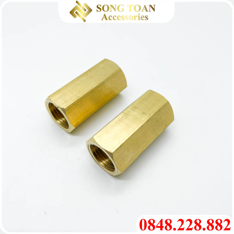 Tên sản phẩm: Măng Sông Thau 5cm, Khớp Nối Hai Đầu Ren Trong - Bằng Đồng