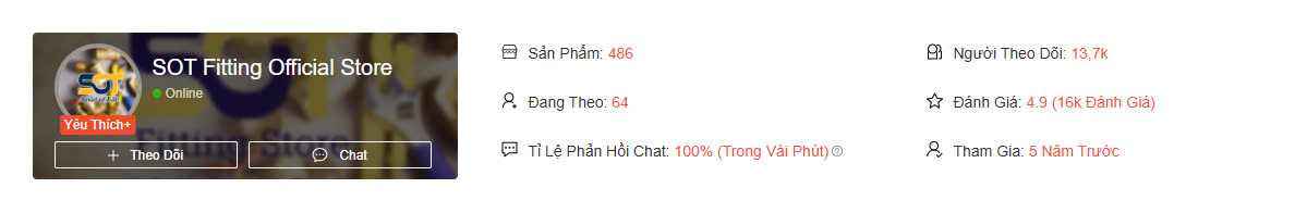 Với sự hiện diện trên Shopee, SOT Fitting Official Store cam kết mang đến cho khách hàng những sản phẩm và dịch vụ chất lượng, đồng thời tạo dựng niềm tin trong từng giao dịch.