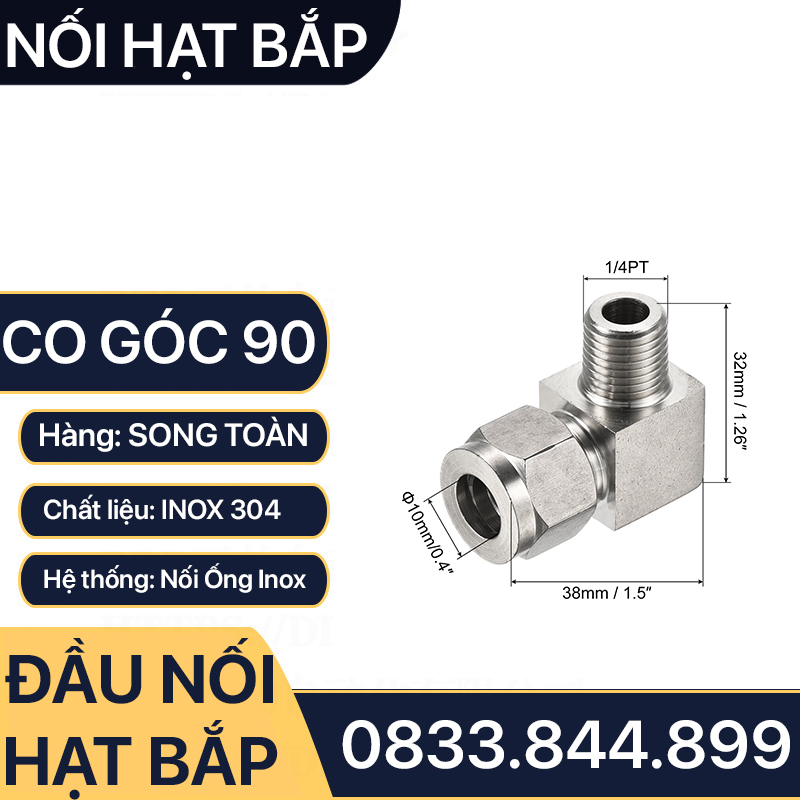 Nối co ren ngoài 1/4 - ống inox 10