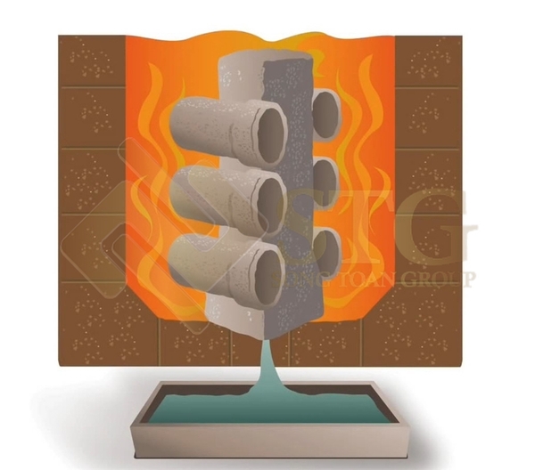 - Vỏ sau khi sấy được đưa vào máy thoát sáp để loại bỏ sáp. Sau đó, vỏ gốm sẽ được nung trong lò ở nhiệt độ cao để đạt độ bền và ổn định.