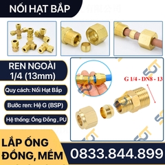Nối Ren Ngoài 1/4 (13) - 1 Đầu Ren, 1 Đầu Côn Lõm Hạt Bắp NPT Nối Ống Đồng, Ống PU