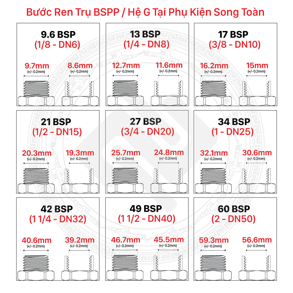 Thân nối ren ngoài: Kích thước ren ngoài cố định 1/4 inch (13).