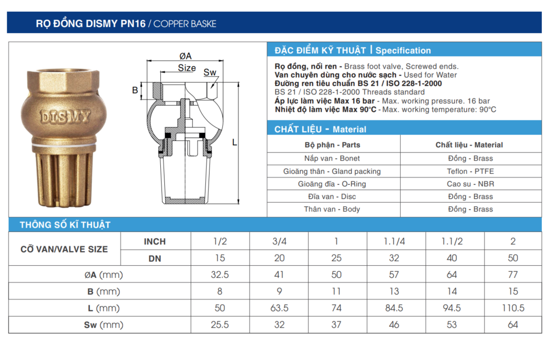 Rọ Đồng DISMY PN16 - Giải Pháp Tối Ưu Cho Hệ Thống Cấp Nước Sạch