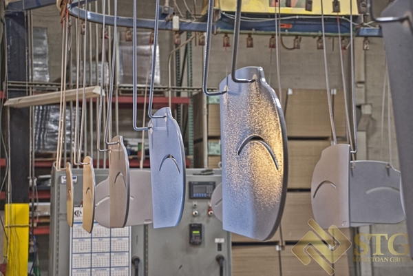 Giải Pháp: Sử dụng kỹ thuật sơn phun thủ công đè lên lớp sơn tĩnh điện để giảm thời gian chờ và chi phí.