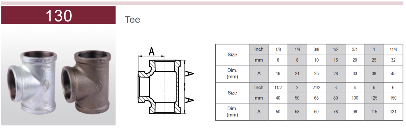 Kết nối đa dạng: Sản phẩm tê ren trong mạ kẽm giúp kết nối ba chi tiết ren ngoài một cách dễ dàng, phù hợp với nhiều ứng dụng khác nhau từ dân dụng đến công nghiệp.