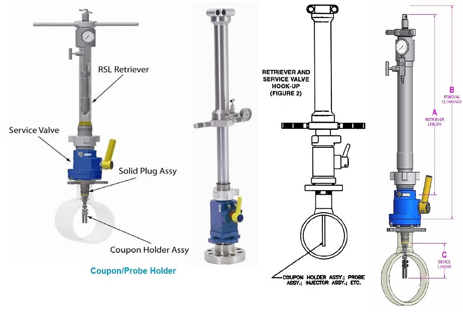 Khi giới thiệu về hai thiết bị trên, đặc biệt cần lưu ý đến special tool được sử dụng để tháo lắp thiết bị đo độ ăn mòn. Điều này là quan trọng vì tool này có kích thước lớn và yêu cầu không gian vận hành với chiều cao lên đến 2m. Do đó, khi thiết kế vị trí lắp đặt các thiết bị này, cần xem xét không gian vận hành của special tool, đặc biệt là chiều cao 2m, từ điểm kết nối vào đường ống.