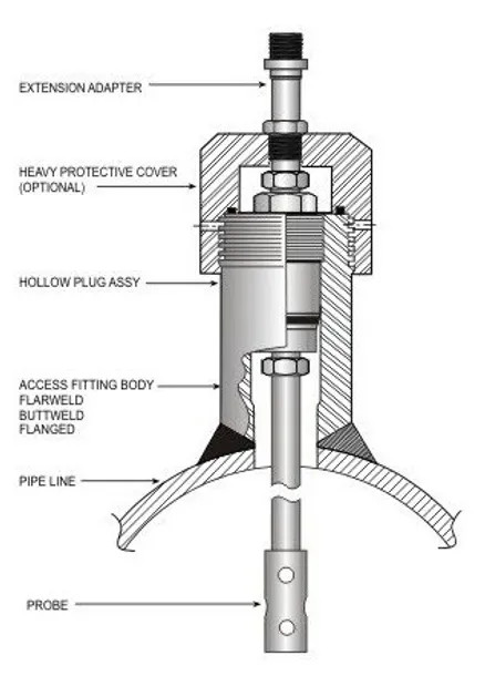 - Tương tự như corrosion coupon, corrosion probe cũng yêu cầu special tool để lắp đặt và tháo ra trong quá trình bảo trì khi probe cần được thay thế. Tuy nhiên, corrosion probe được sử dụng để đo độ ăn mòn của lưu chất trực tuyến. Điều này có nghĩa là độ ăn mòn của probe được báo cáo ngay lập tức thông qua hệ thống điều khiển, cung cấp thông tin liên tục về tình trạng ăn mòn của đường ống.
