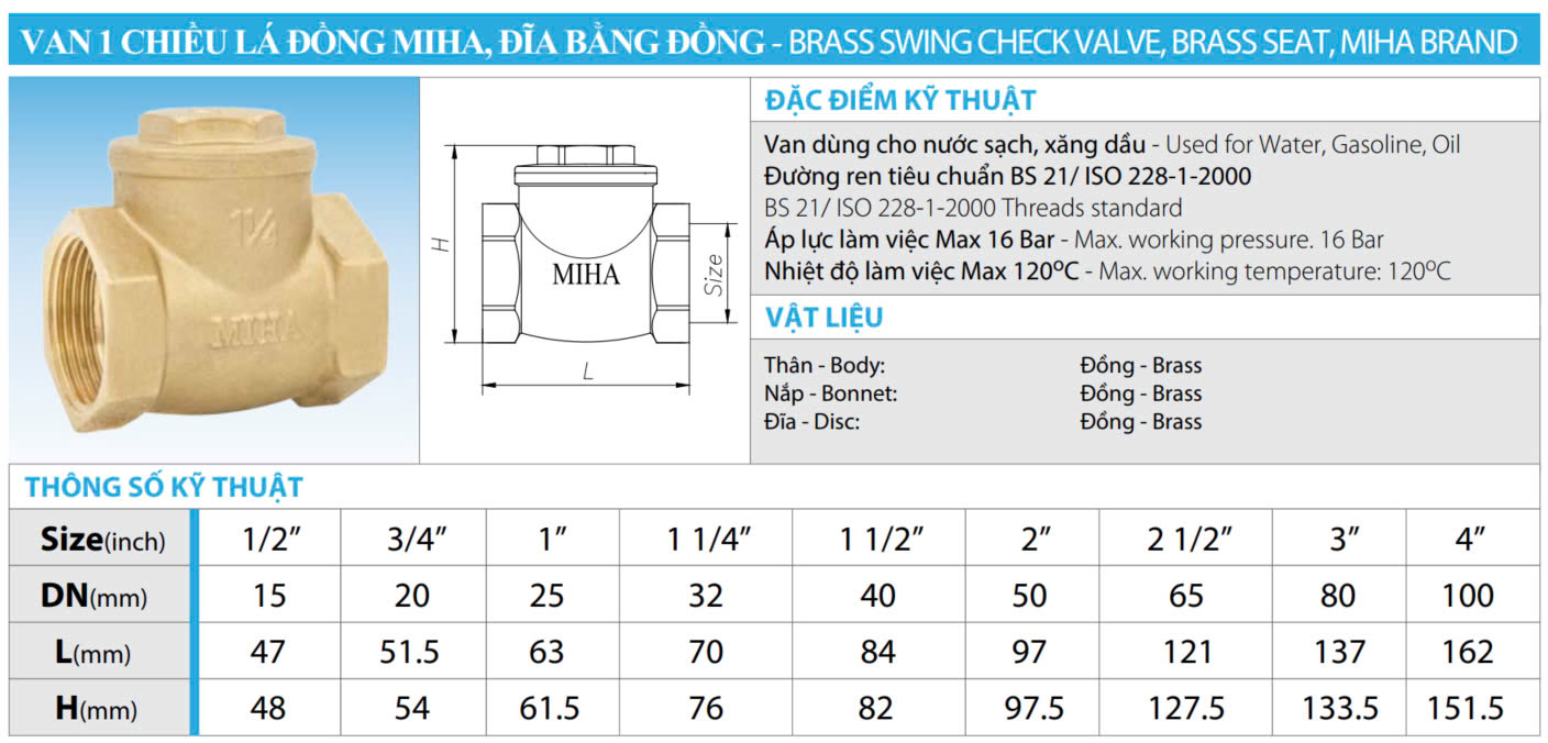 1. Đặc Điểm Kỹ Thuật Nổi Bật Của Van Một Chiều Lá Đồng MIHA