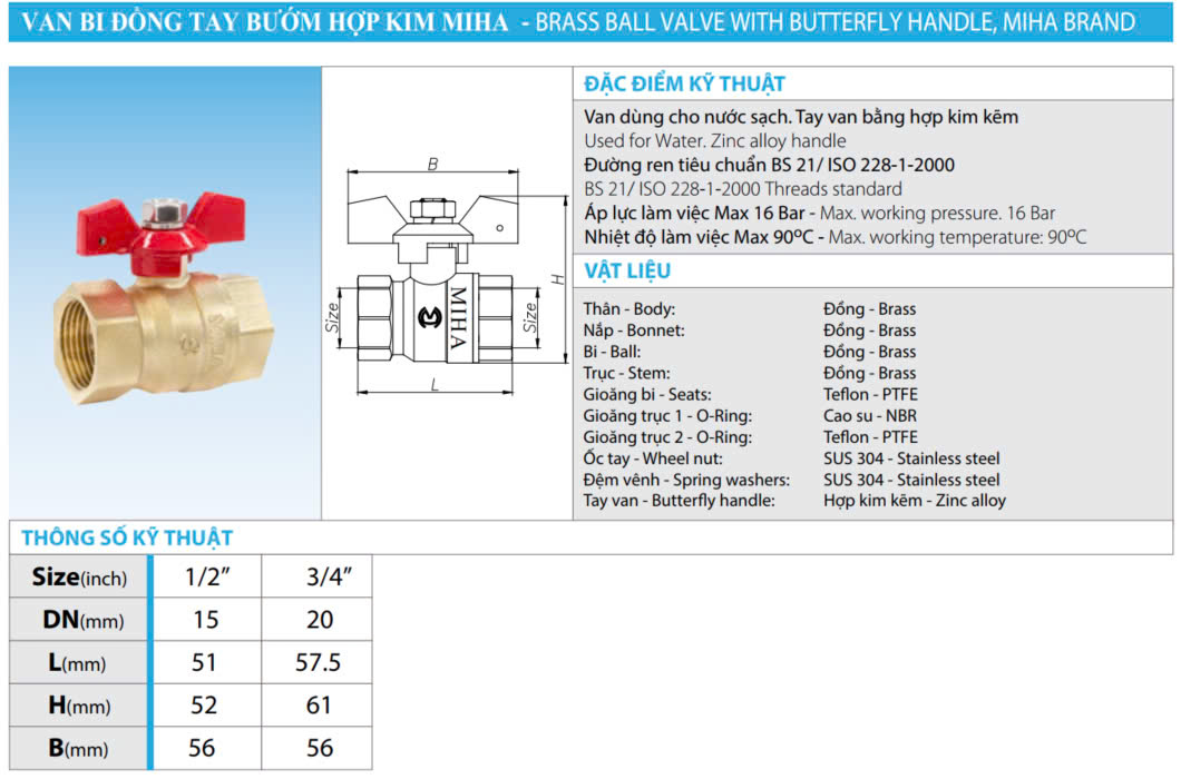 1. Đặc Điểm Kỹ Thuật Nổi Bật Của Van Bi Đồng MIHA
