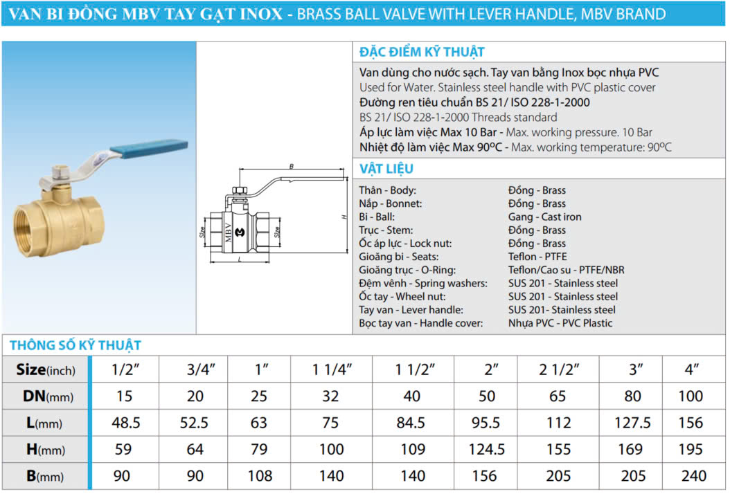 Van bi đồng MBV tay gạt inox là giải pháp lý tưởng dành cho các hệ thống nước sạch, với thiết kế bền bỉ, khả năng chịu áp lực cao và tay gạt inox bọc nhựa PVC tiện dụng, giúp tăng hiệu quả vận hành.