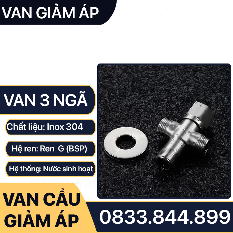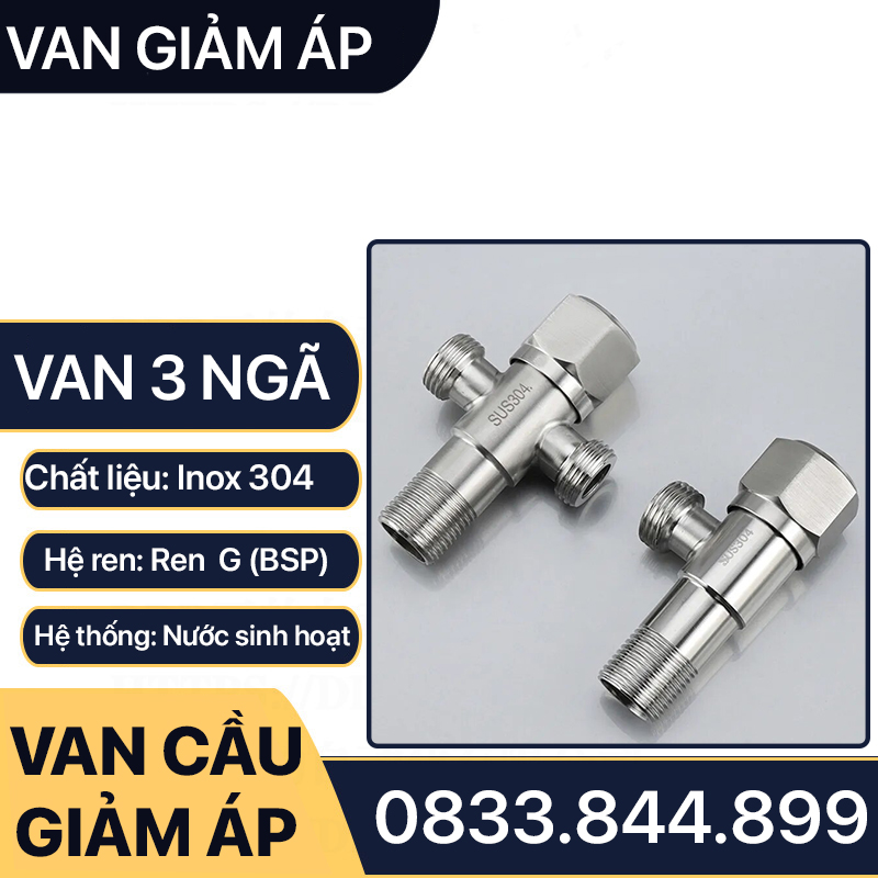 Van Chia Nước Bồn Cầu Inox 304, Van Giảm Áp Inox Ren 21 Lắp Đặt Chia Nước Bồn Cầu, Vòi Xịt