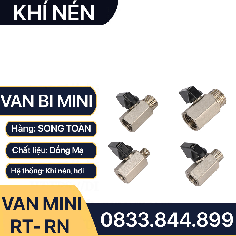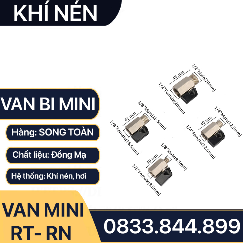 Van Hơi Mini Ren Trong Ren Ngoài, Van Khí Nén Áp Lực Cao Ren Trong Ren Ngoài 9.6 13 17 21 - Đồng Mạ