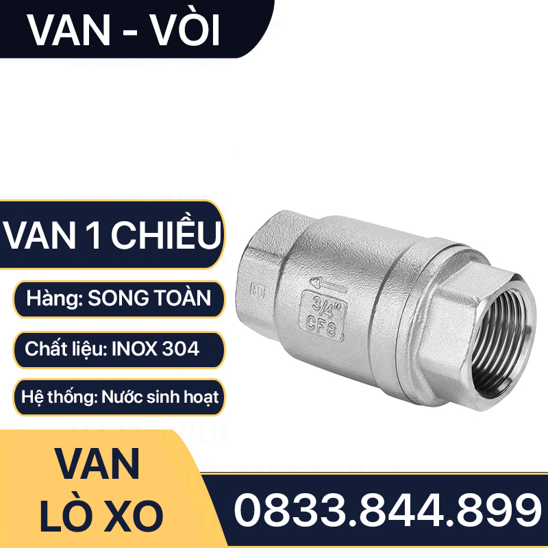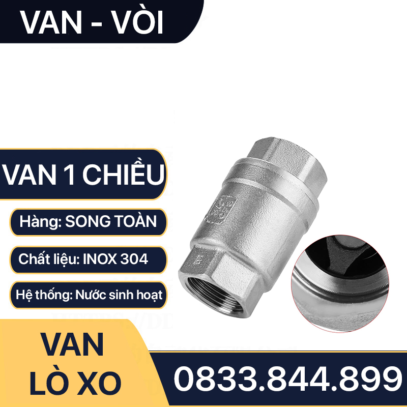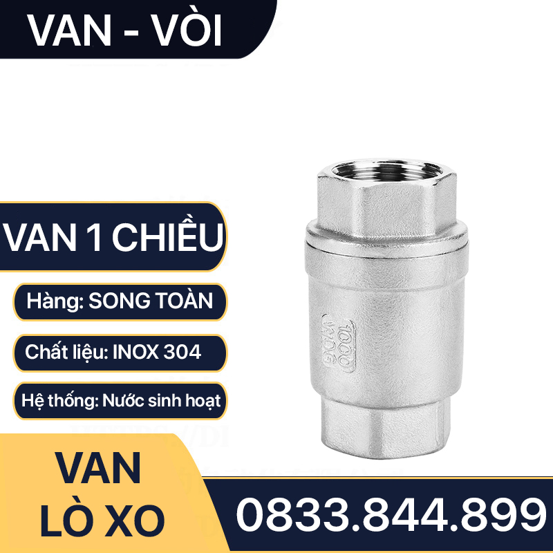 Van một chiều lò xo Inox 304 là một sản phẩm chất lượng không thể thiếu trong hệ thống đường ống và ứng dụng công nghiệp.