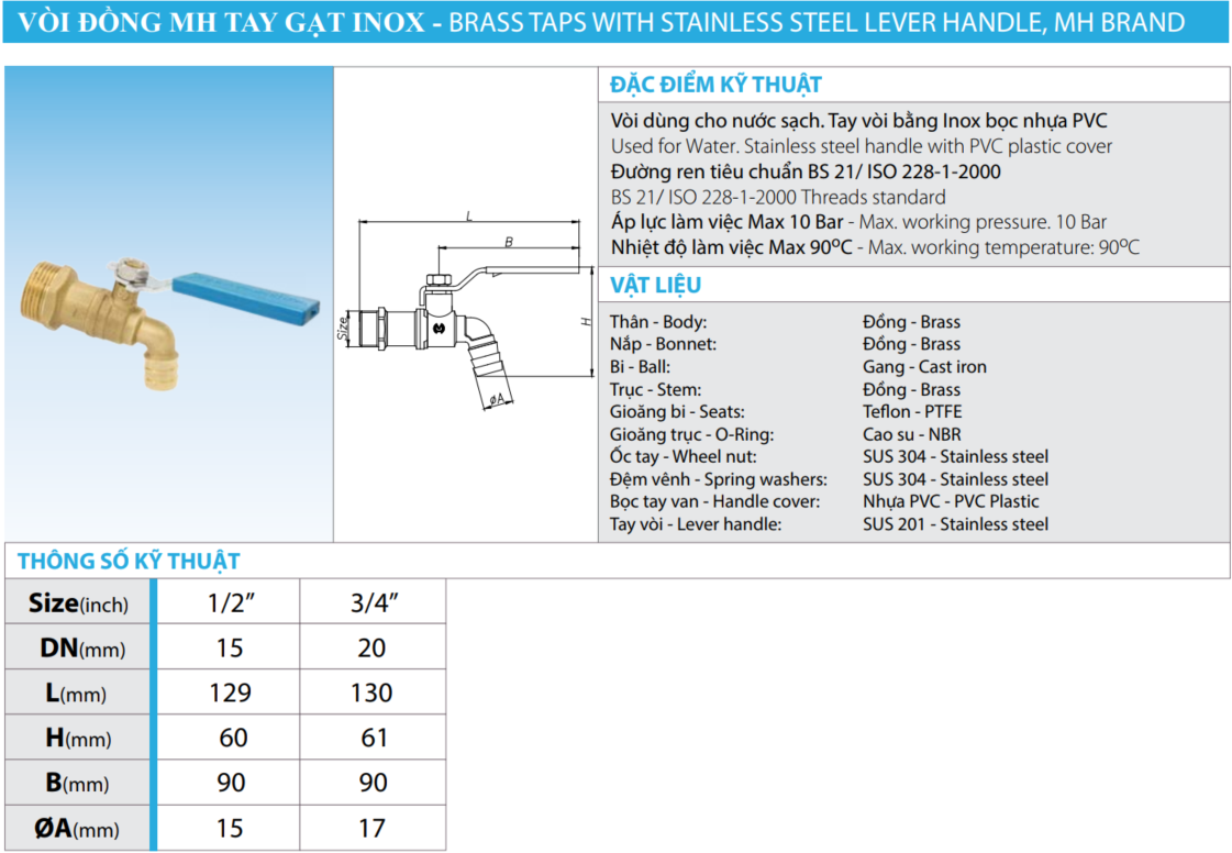 Vòi Đồng MH Tay Gạt Inox - Lựa Chọn Hoàn Hảo Cho Hệ Thống Cấp Nước
