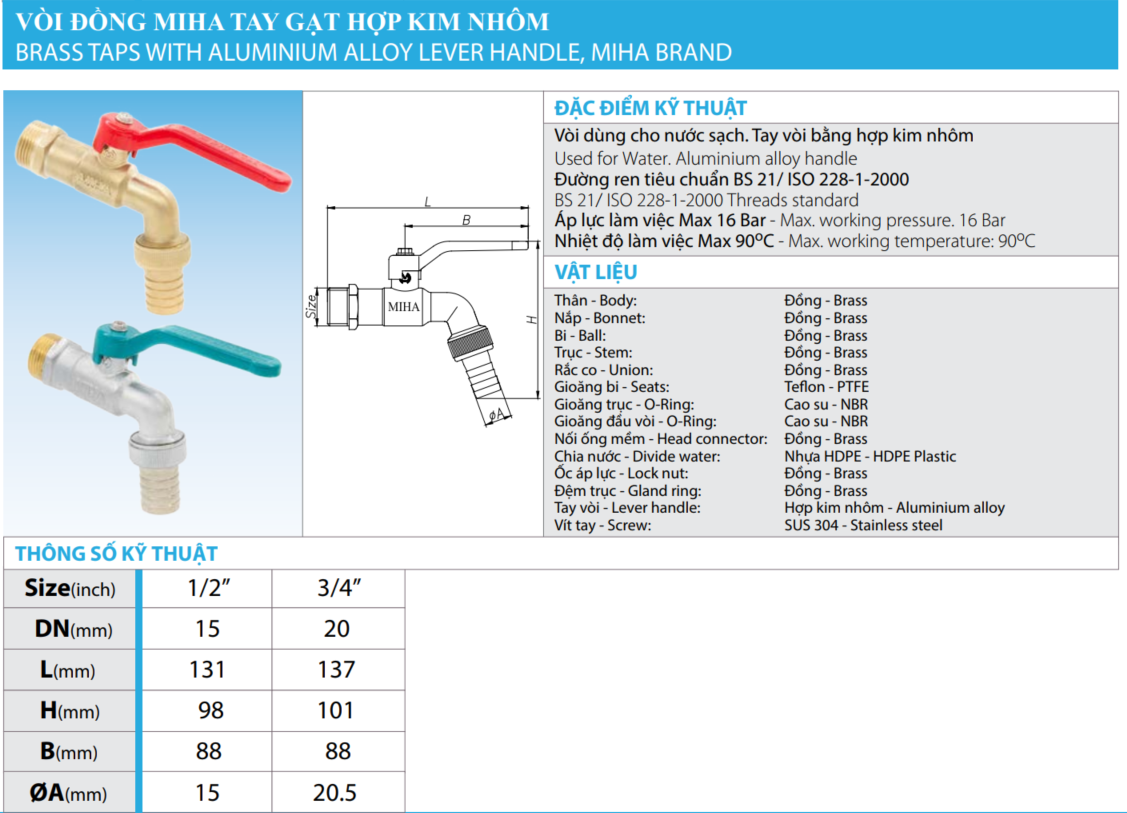 Vòi đồng MIHA tay gạt hợp kim nhôm là dòng sản phẩm được thiết kế đặc biệt dành cho các hệ thống nước sạch. Với thiết kế tiện lợi, bền bỉ, và tính ứng dụng cao, sản phẩm này luôn là lựa chọn hàng đầu cho các công trình dân dụng và công nghiệp.