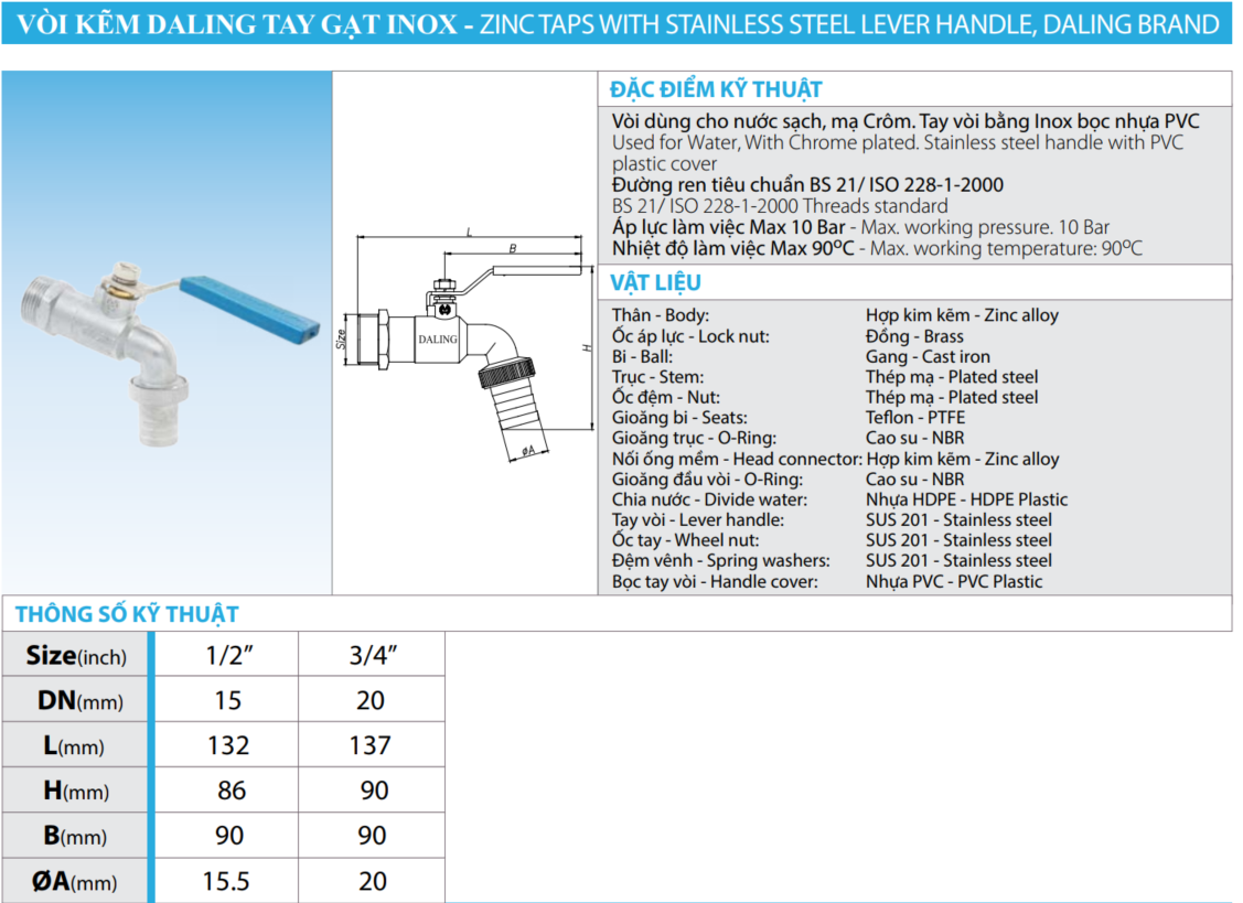 Vòi kẽm Daling tay gạt inox là sản phẩm vượt trội về chất lượng và hiệu suất, được thiết kế tối ưu cho hệ thống nước sạch. Với độ bền cao, thiết kế hiện đại và khả năng vận hành hiệu quả, đây là lựa chọn lý tưởng cho cả ứng dụng dân dụng và công nghiệp.