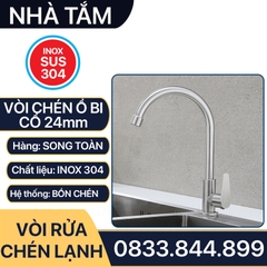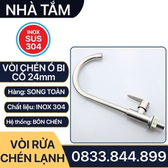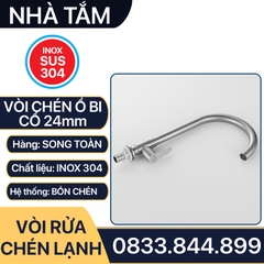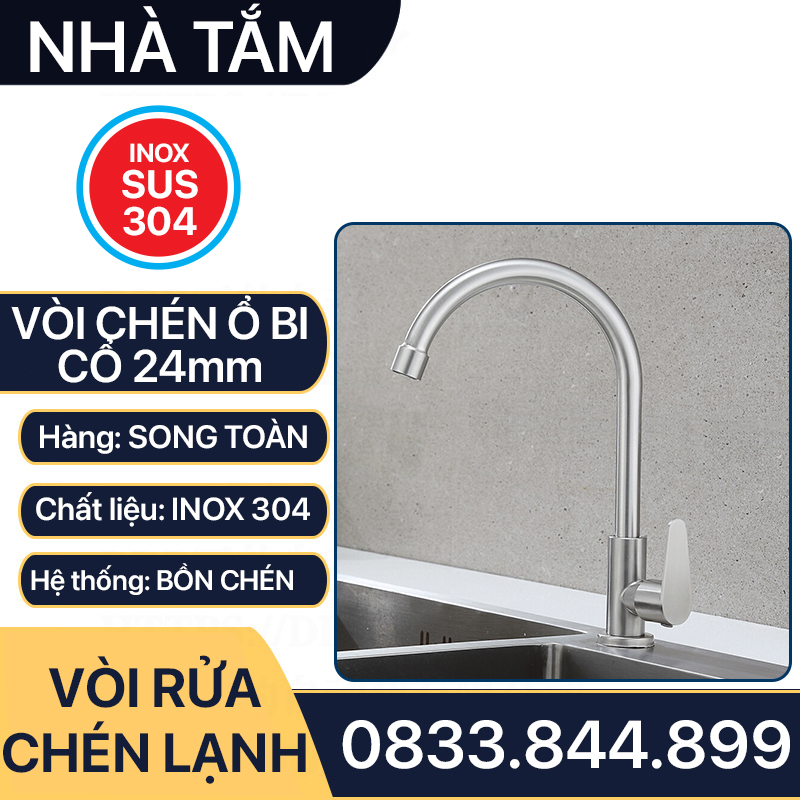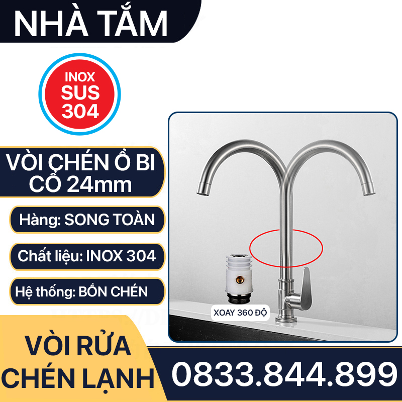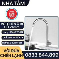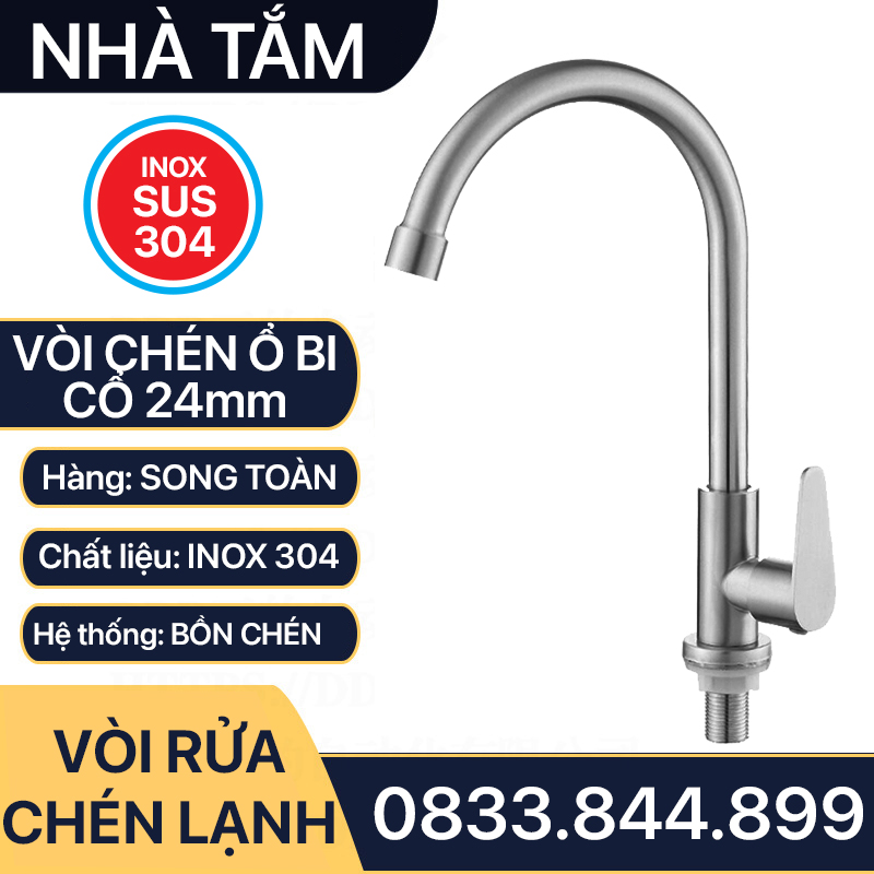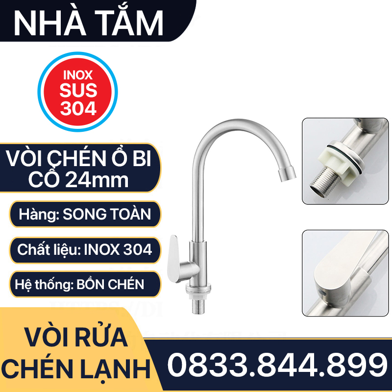 Vòi Rửa Chén Cổ Bi Inox, Vòi Chén Xoay Ổ Bi Inox 304 Cổ 24mm - Chân ren 21